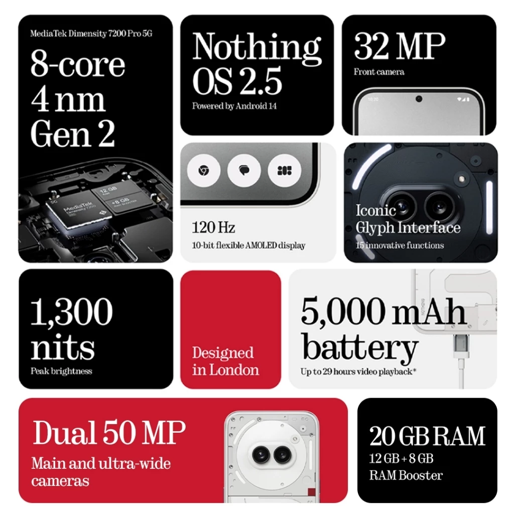 MEDIATEK DIMENSITY 7200 PRO | 6.7″ 120HZ AMOLED | 50MP AI DUAL CAMERA | 5000MAH BATTERY | 45W FAST CHARGING | ANDROID 14, NOTHING OS 2.5