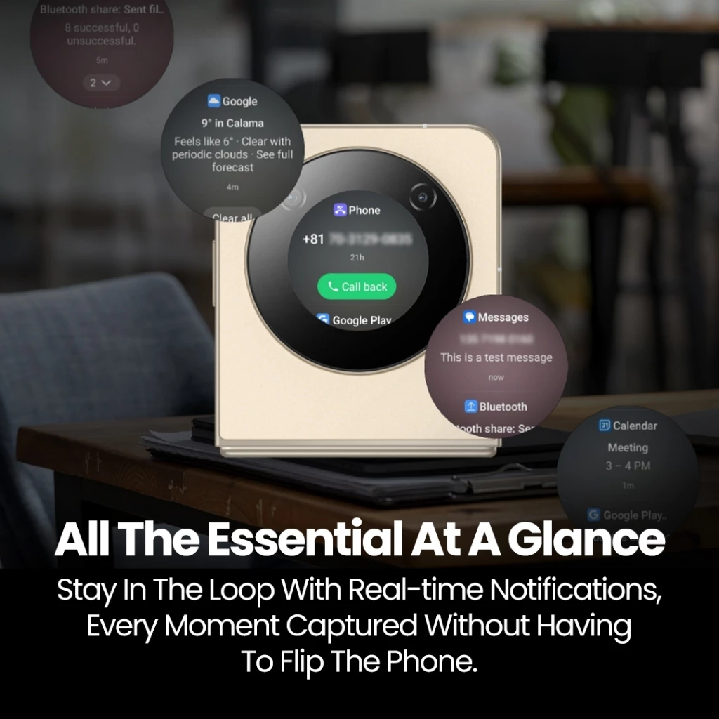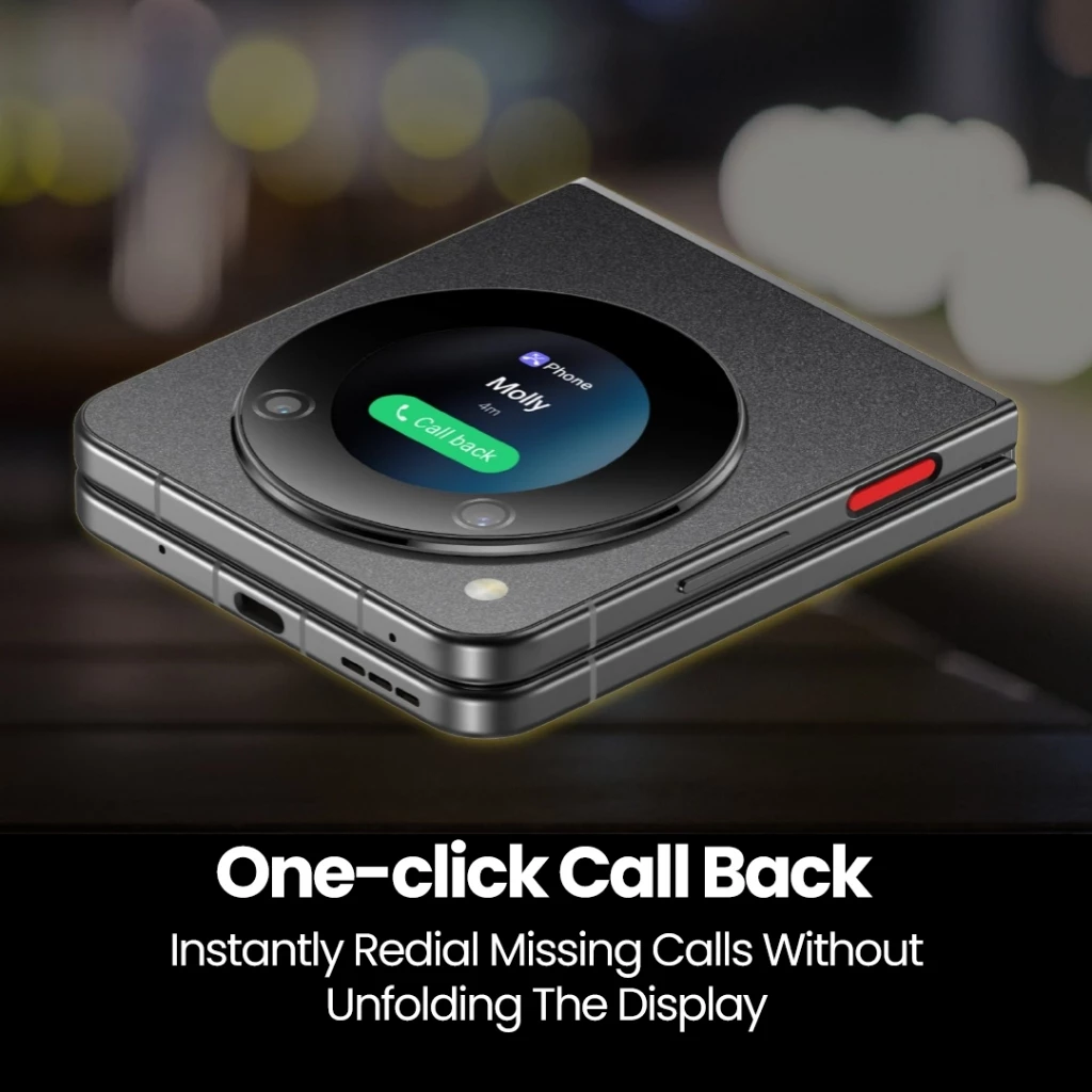 Out: φ1.43”, OLED In: 6.9” FHD+(2790*1188), 120Hz, foldable display