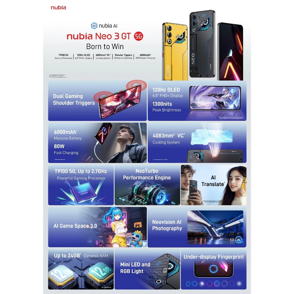Nubia Neo 3 GT 5G 12+256GB – PREORDER ETA 21/APR/2025