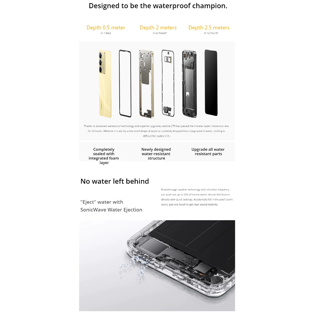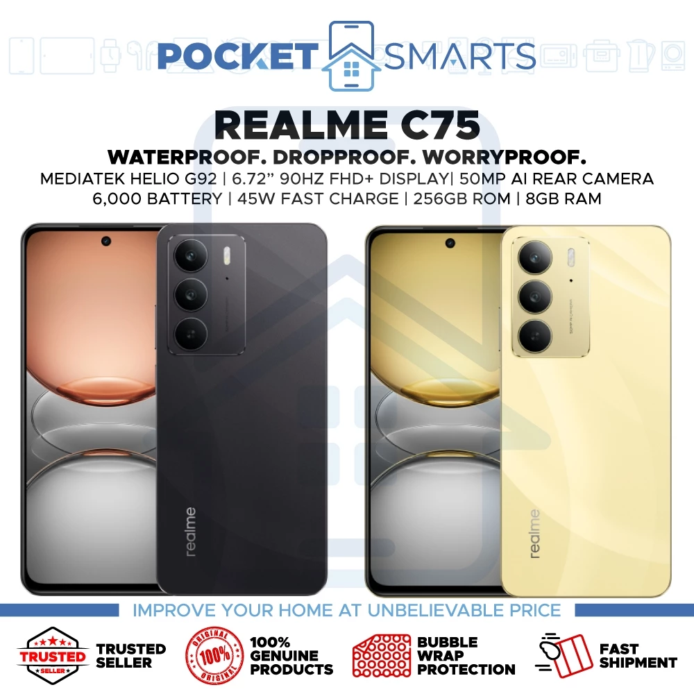 realme C75 Phone Screen Protector Charging Dock USB Type-C Cable Product Information (including Warranty Card) User Manual SIM Card Slot Opening Tool Phone Case
