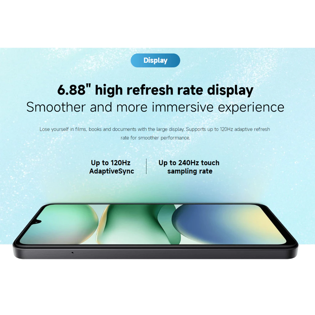 UNISOC T7250 PROCESSOR | 6.88″ 120HZ DISPLAY | 32MP AI DUAL CAMERA | 5,200MAH BATTERY | 15W FAST CHARGING | ANDROID 15 (GO EDITION)